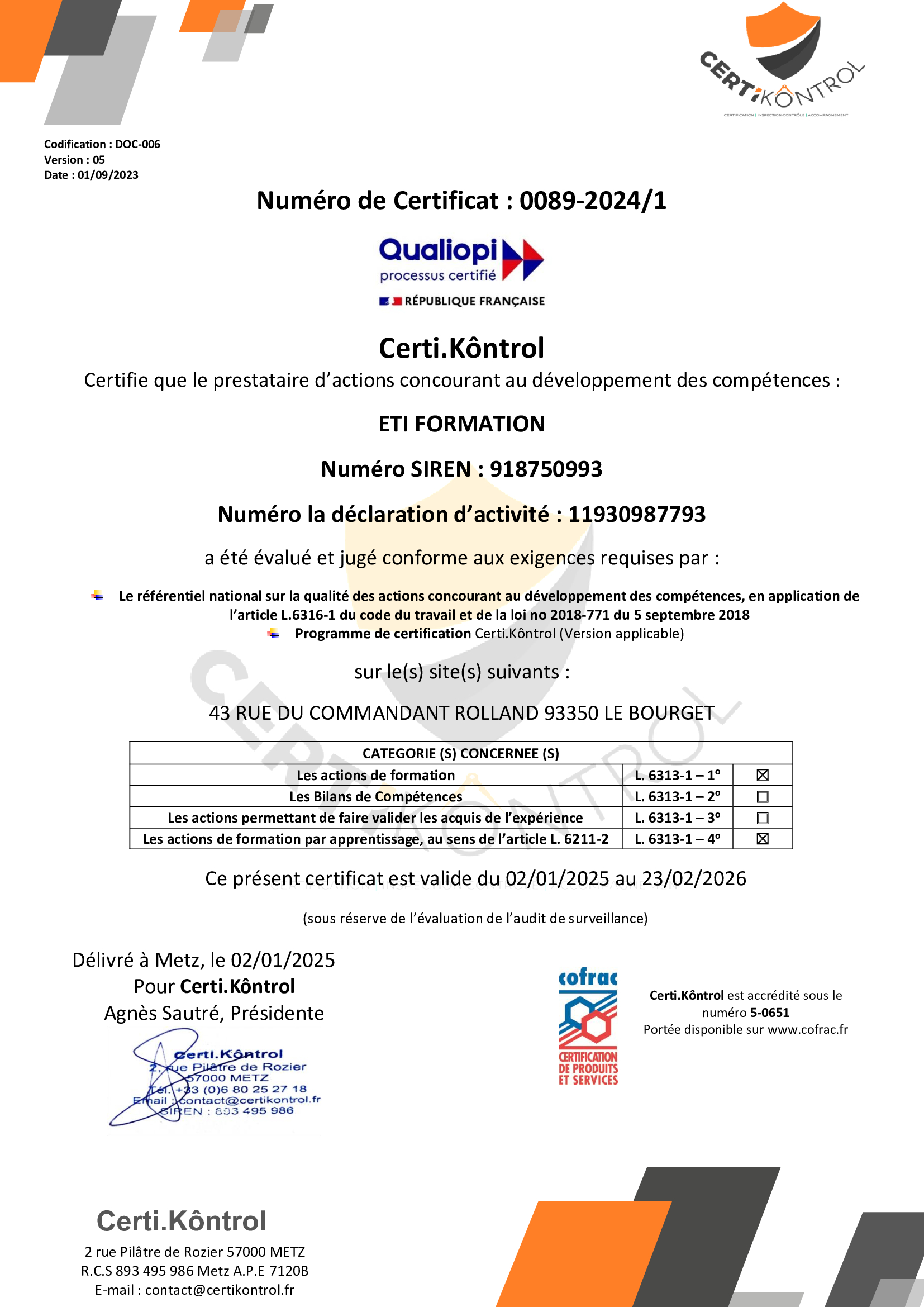 Présentiel au centre ETI Formations (Le Bourget). À confirmer lors de l'entretien de positionnement.